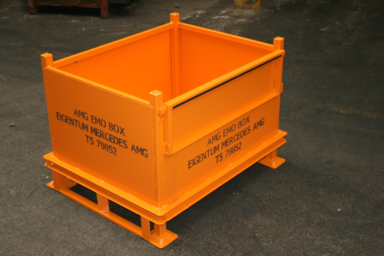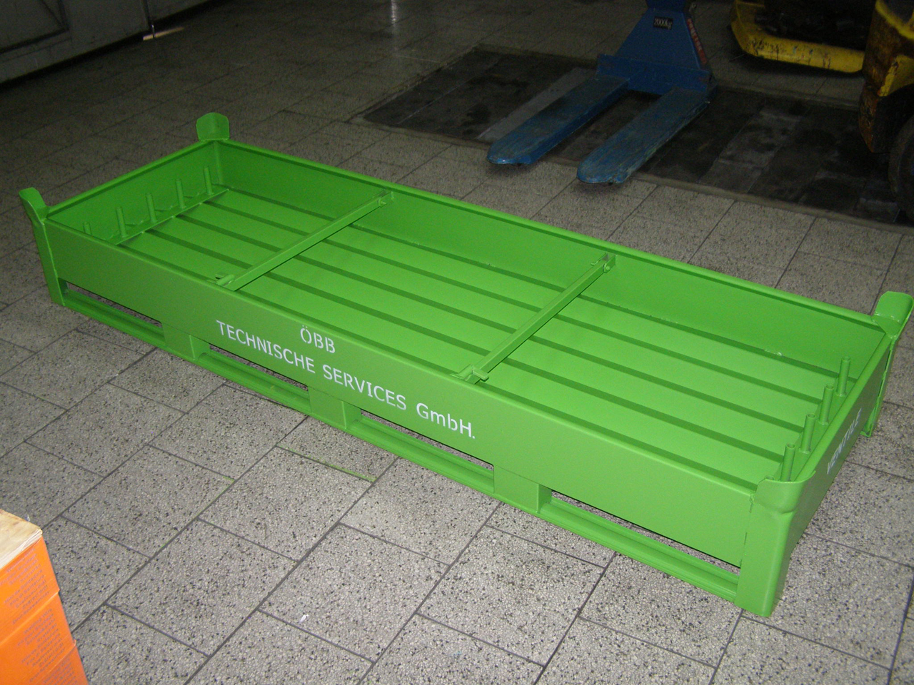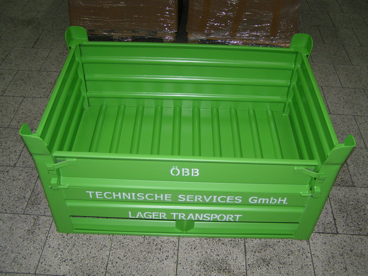Ohradové kovové boxy majú vysokú odolnosť a sú veľmi dobre stohovateľné. Používajú sa na širokú škálu skladovania tovaru a výrobkov. Základné rozmery sú 1200x800x600 mm (nosnosť 1500 kg, stohovateľnosť 6+1 ) a 800x600x600 mm ( nosnosť 1000 kg, stohovateľnosť 5+1 ).